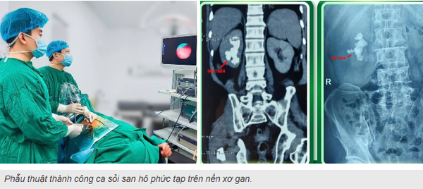 Bệnh nhân là ông Nguyễn Bá H. (51 tuổi, trú xã Quỳ Hợp, Nghệ An), nhập viện trong tình trạng thể trạng suy kiệt, mắc sỏi san hô thận phải kích thước lớn kèm xơ gan. Đây là nhóm bệnh nhân có nguy cơ chảy máu rất cao, mọi can thiệp phẫu thuật đều tiềm ẩn rủi ro đe dọa tính mạng.