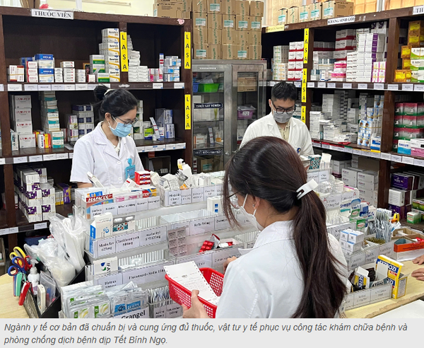 Bộ Y tế cho biết ngành y tế cơ bản đã chuẩn bị và cung ứng đủ thuốc, vật tư y tế phục vụ công tác khám chữa bệnh và phòng chống dịch bệnh. Đến ngày 22/2 (mùng 6 Tết), không ghi nhận phản ánh thiếu thuốc, vật tư y tế trong phòng và điều trị bệnh trên phạm vi cả nước. Duy trì thường trực, bảo đảm công tác phòng, chống dịch bệnh, khám, chữa bệnh, an toàn thực phẩm và cung ứng thuốc trong dịp Tết Bính Ngọ năm 2026.